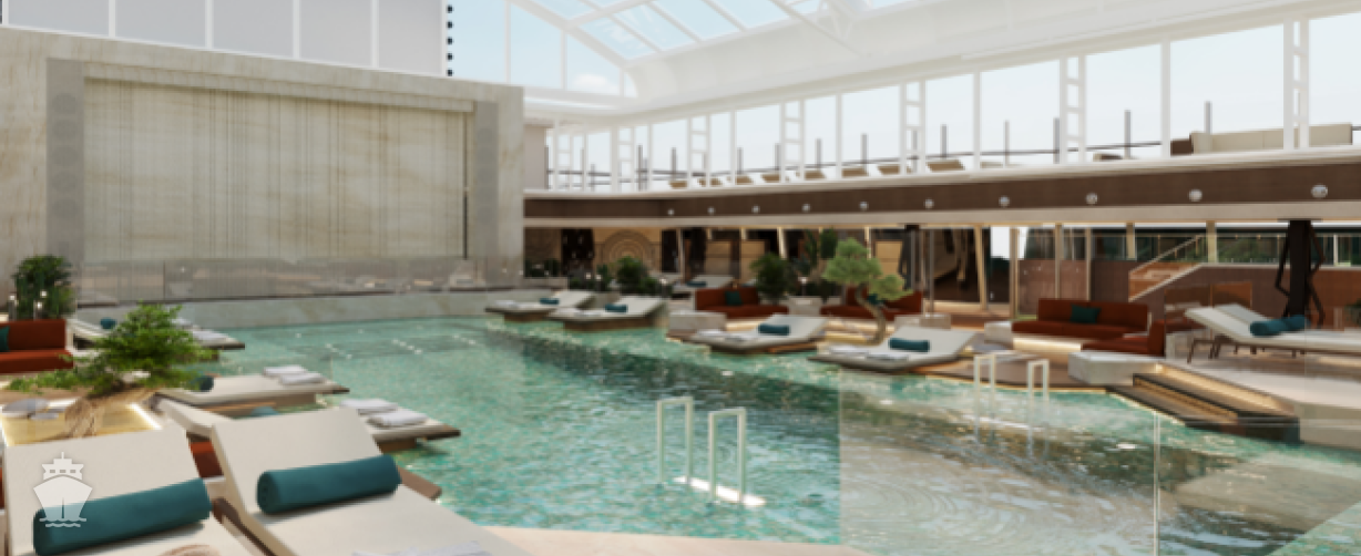 Ubytovanie: Vďaka 461 suitám, penthausom a rezidenciám s výhľadom na more, ktoré sú vybavené súkromnou terasou a oknami od podlahy až po strop, hostia budú ešte intenzívnejšie vnímať pobyt na mori a v prístave. Pôžitok z plavby dopĺňa rafinovaná európska elegancia na kautách, s bezkonkurenčným priestorom, so súkromím a so službami tak, aby hostia relaxovali vo svojich pohodlných domovoch na mori. Na uvítanie čaká hostí fľaša šampanského.