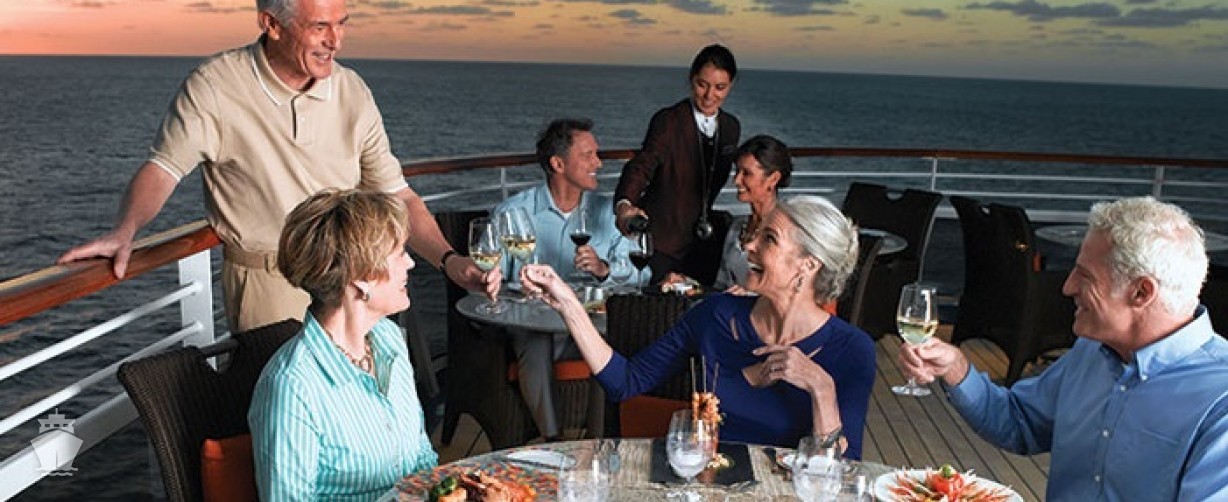 • Owner’s Suites: súkromný obed v apartmáne od 12:00 do 14:00 (voliteľné) v deň nalodenia