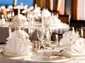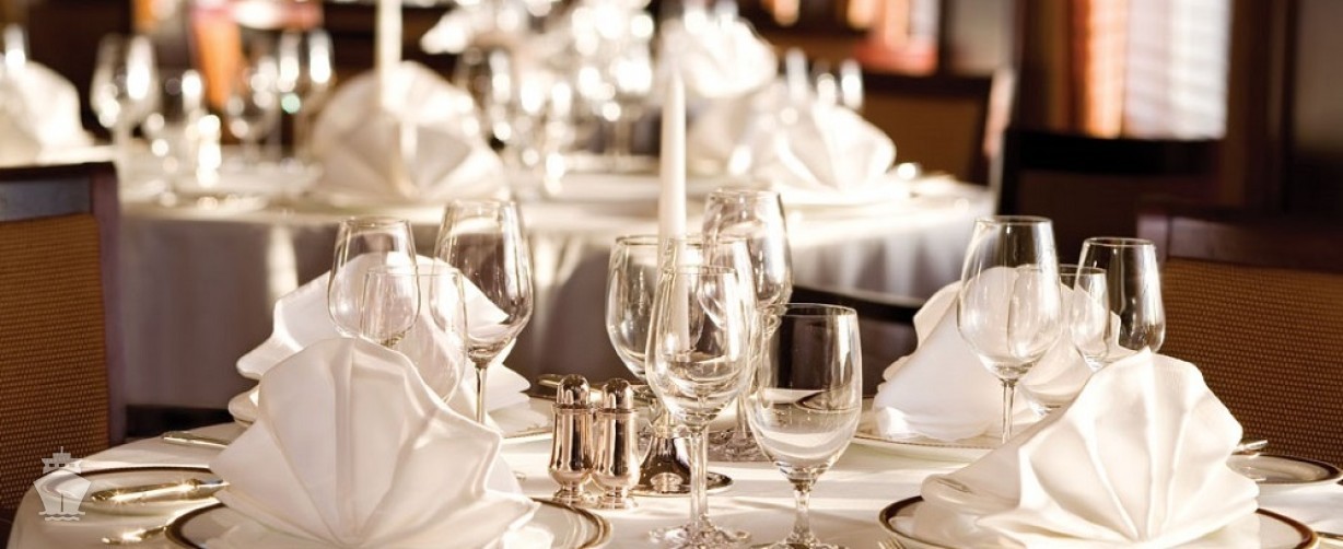 Každá loď má viacero stravovacích zariadení. Stravovanie v hlavnej reštaurácii, The Restaurant, s otvoreným sedením, je v cene plavby.