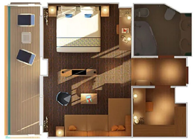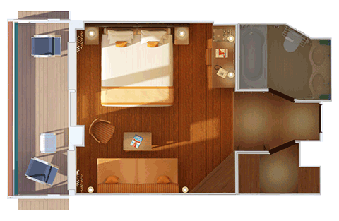 | HS - Suite Havana Cabana 24 m²+ vonkajšie patio 9 m². 5. paluba. Výhody Suite. Tropický štýl, vstup do exkluzívnej zóny Havana. | 4 592 € 2 296 € za osobu | ||