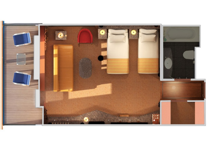 OB - Junior Suite / obmedzený výhľad 20 m² + balkón s obmedzeným výhľadom 2,5 m². 11. paluba vpredu. Výhody Suite. 2 434 € 1 217 € za osobu