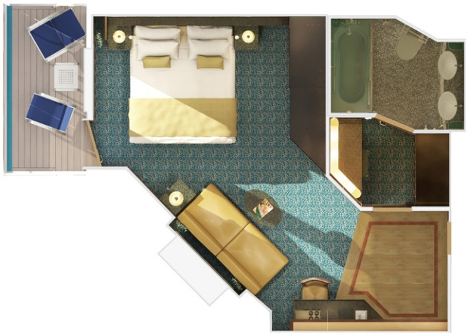 | GS - Grand Suite 32 m² / balkón 8 m². 7. paluba stred. Max 4 osoby. Výhody Suite. | 1 872 € 936 € za osobu | ||