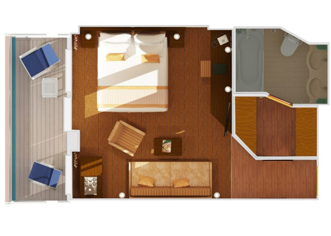 | GS - Grand Suite 32 m² + balkón 8 m². 7. paluba stred. Výhody Suite. | 3 242 € 1 621 € za osobu | ||
