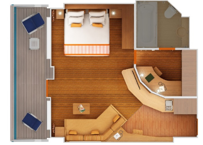 | 9C - Kajuta s balkónom Premium Vista 17 m² + rohový balkón 7 m². 6,7,8. paluba vzadu. | 1 960 € 980 € za osobu |