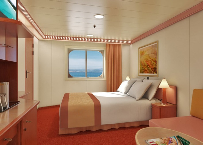 Základné vybavenie všetkých kajút: kúpeľňa so sprchou a WC, TV s plochou obrazovkou, telefón, elektrická zásuvka 110 AC, regulovateľná klimatizácia, postele Carnival Comfort, sušič na vlasy, bezpečnostná schránka, mini chladnička