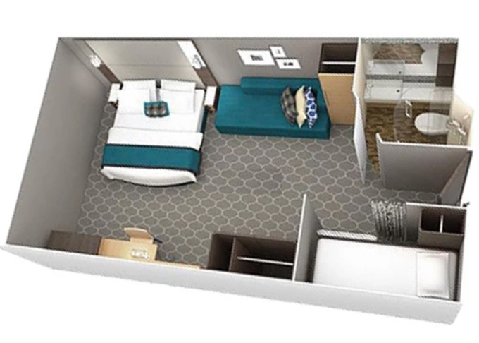 | CI - Vnútorná kajuta Connecting 16 m². Prepojiteľná kajuta. Max 2 osoby. | 2 808 € 702 € za osobu | ||
