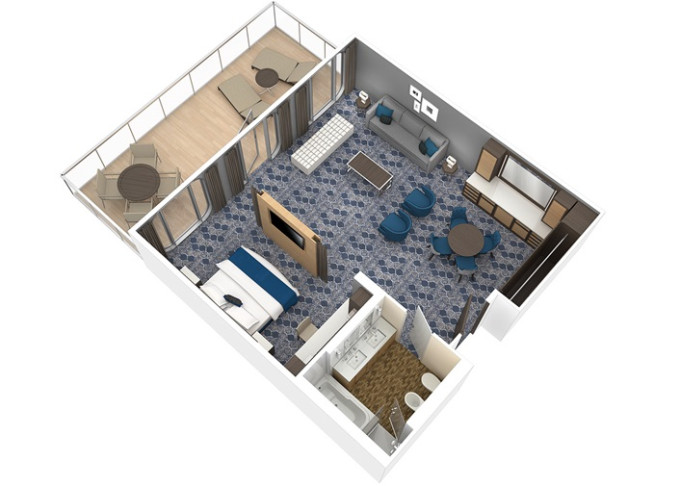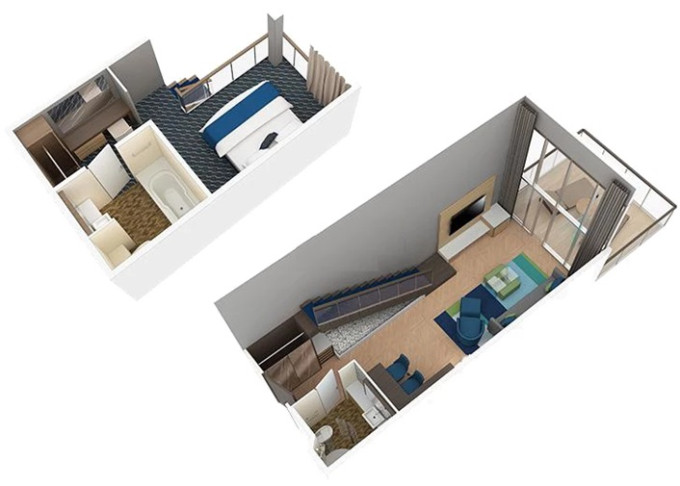 | L1 - Crown Loft Suite s balkónom 68 m² + balkón 13 m². 2-podlažný apartmán. 17. paluba. Max 4 osoby. Výhody Royal Suite Sky Class. | 6 951 € 6 951 € za osobu | ||