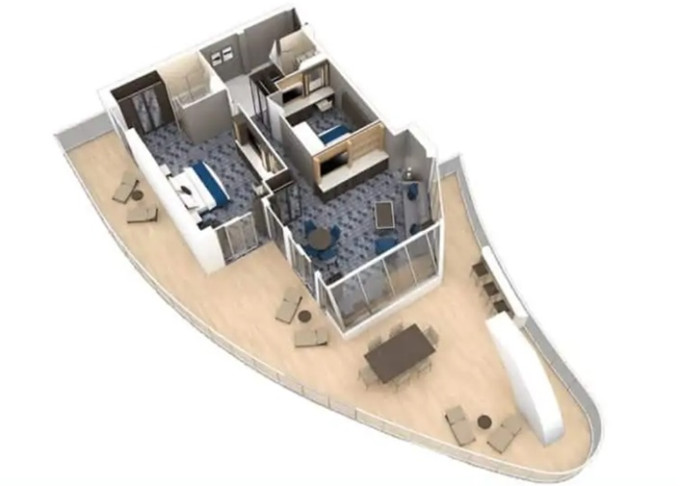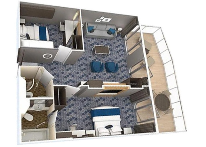 | A1 - Suite AquaTheater Spacious / 2 spálne 76 m² + balkón 72 m². 8. paluba. Max 8 osôb. Výhody Royal Suite Star Class. | 15 042 € 7 521 € za osobu |