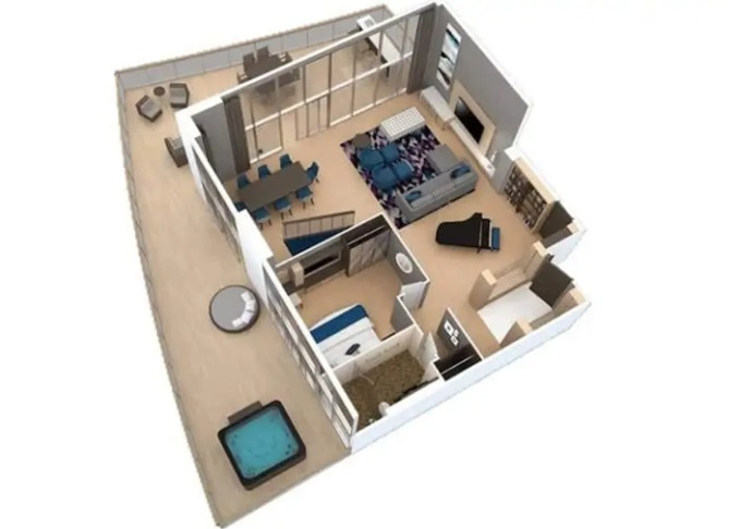 | A1 - Suite AquaTheater Spacious / 2 spálne 76 m² + balkón 72 m². 8. paluba. Max 8 osôb. Výhody Royal Suite Star Class. | 14 902 € 14 902 € za osobu |