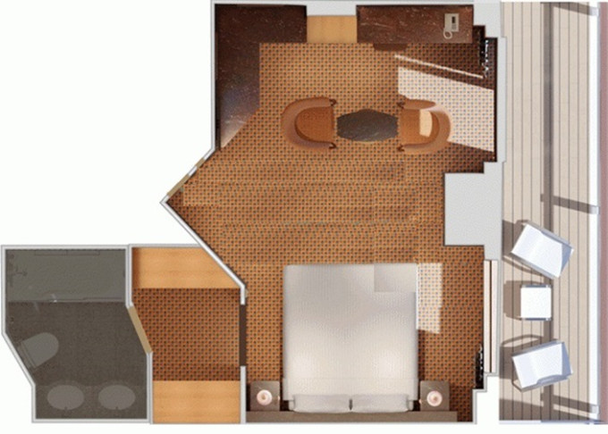 | GV - Grand Vista Suite cca 53 - 68 m² vrátane balkóna. 4. až 8. paluba. | 2 214 € 1 107 € za osobu | ||