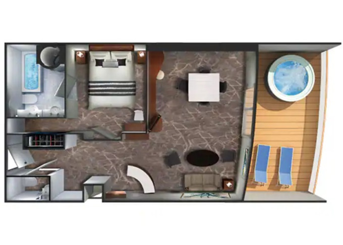 | SA - Owner's Suite 77 m² / balkón 32 m². Vírivka. 8/9. paluba - vpredu. Max 5 osôb. Výhody Suite. | 12 848 € 6 424 € za osobu | ||