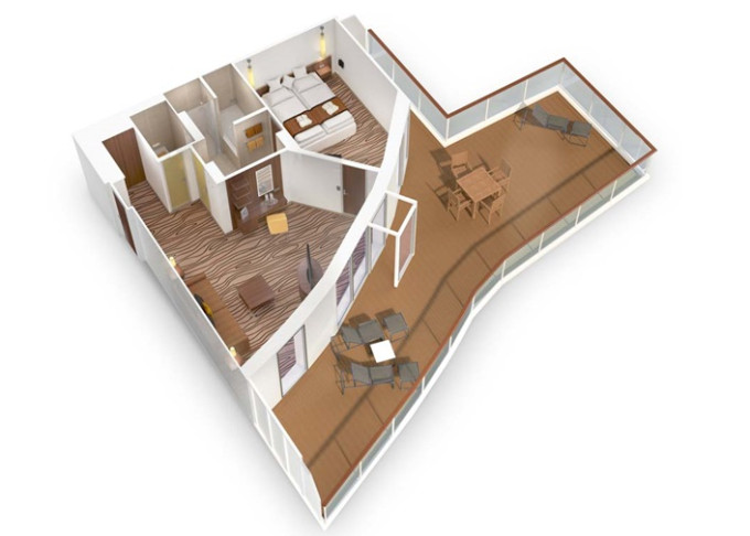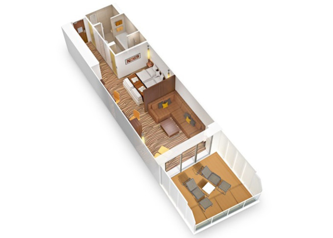 | SA - Suite Deluxe PREMIUM 43 m² / 72 m² balkón. 12. paluba. Max 4 osoby. Cenový model Premium + výhody Suite. | 7 990 € 3 995 € za osobu |