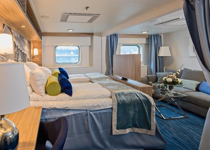 | M4 - Expedition Suite s oknami 28-30 m². Neotvárateľné okná. Oddelená spálňa, obývacia časť, Tv, Wi-Fi, župany, deka, varná kanvica. 5. paluba. Max 4 osoby. Výhody Suite. | 8 098 € 4 049 € za osobu | ||
