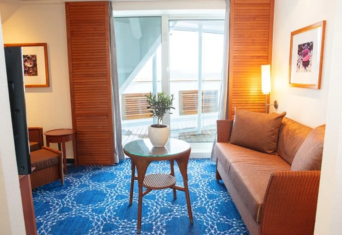 SJC - Junior Dream Suite s balkónom kajuta 21 m² / balkón 6 m² . Max 3 osoby,10. paluba. Stolovanie vo vyhradenej časti reštaurácií Smoked Olive a Pink Moon. 2 518 € 1 259 € za osobu