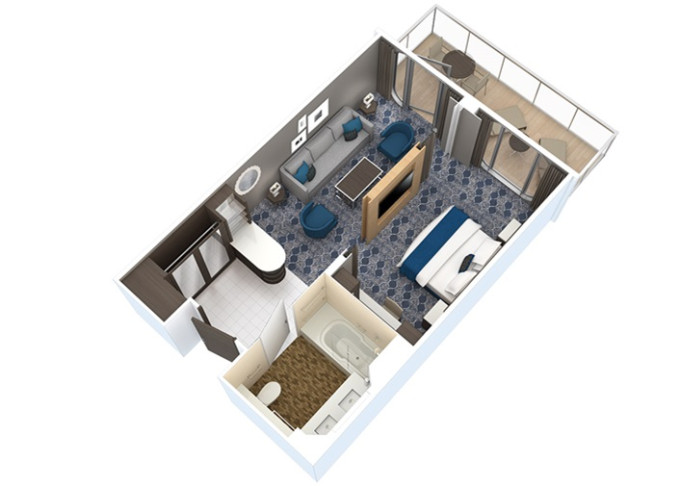 1A - Veľká kajuta s veľkým balkónom Ultra Spacious 25 m² / balkón 7,5 m². 7,11. paluba. Max 6 osôb. 3 437 € 3 437 € za osobu
