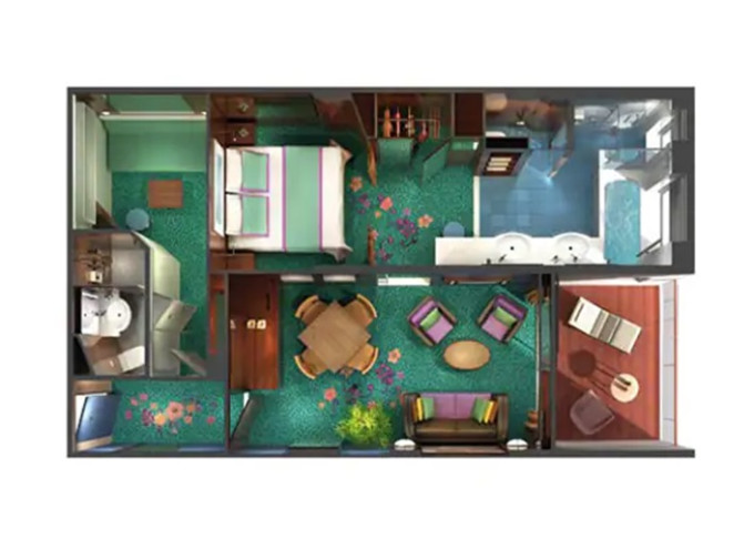 | S4 - Deluxe Family Suite - 2 spálne 50 m² / balkón 5 m². Výhody Suite. 11. paluba - vpredu, stred. Max 6 osôb. | 3 366 € 1 683 € za osobu |