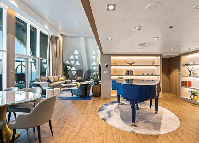 | SO - Solarium Suite Deluxe 77 m². 14. paluba. Celoplošné panoramatické okná. Max 5 osôb. Výhody Royal Suite Star Class. | 7 836 € 1 959 € za osobu |