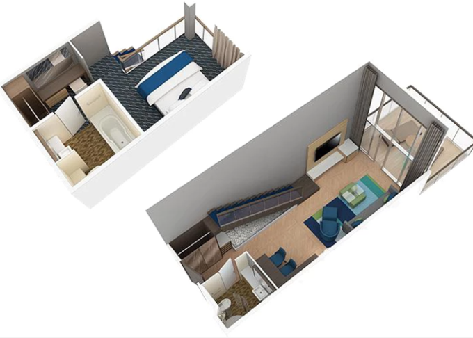 | L1 - Crown Loft Suite 51 m² + balkón 11 m². 2-podlažný apartmán. 18. paluba. Max 4 osoby. Výhody Royal Suite Sky Class. | 5 260 € 2 630 € za osobu |