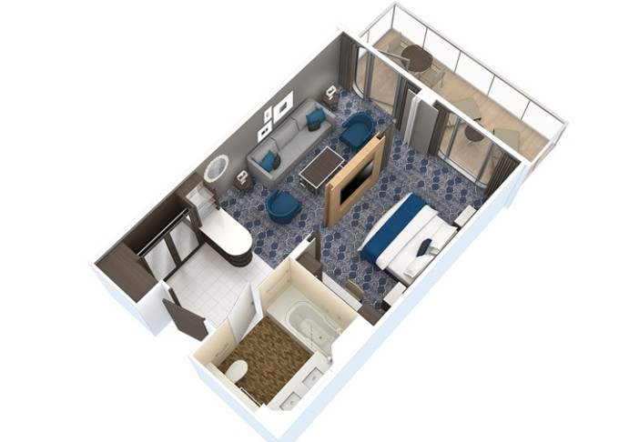 | J4 - Junior Suite s balkónom 27 m² + balkón 7,5 m². Max 5 osôb. Výhody Royal Suite Sea Class. | 3 426 € 3 426 € za osobu |