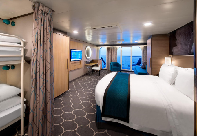 | 1A - Veľká kajuta s veľkým balkónom Ultra Spacious 34 m² + balkón 7 m². 11. paluba. Oddelená časť s poschodovou posteľou. Max 6 osôb. | 3 128 € 3 128 € za osobu | ||