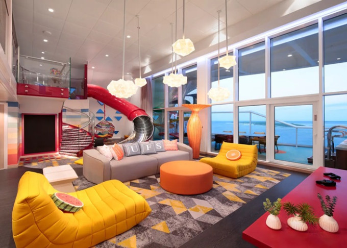 | US - Ultimate Family Suite 230 m² + balkón s vírivkou 50 m². 2 podlažia. 3 spálne, kĺzačka, 85-palcová Tv, in-suite kino, karaoke station. Max 10 osôb. Výhody Royal Suite Star Class. | 16 992 € 4 248 € za osobu |