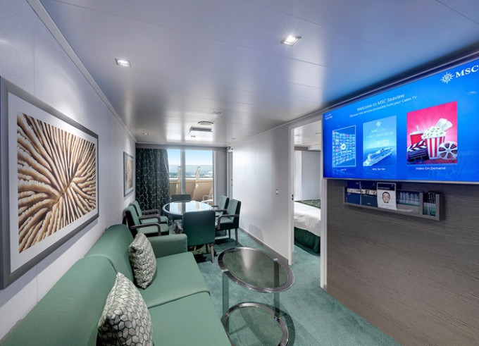 | YC1 - Yacht Club Deluxe Suite 25 m² + balkón 8 m². Spálňa s obývacou časťou, šatník. Max 5 osôb. 16-18. paluba. Cenový model MSC Yacht Club. | 1 972 € 986 € za osobu | ||