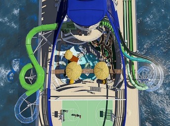 - Športové aktivity na otvorených palubách (jogging, basketbal, futbal, tenis), bazény a ležadlá