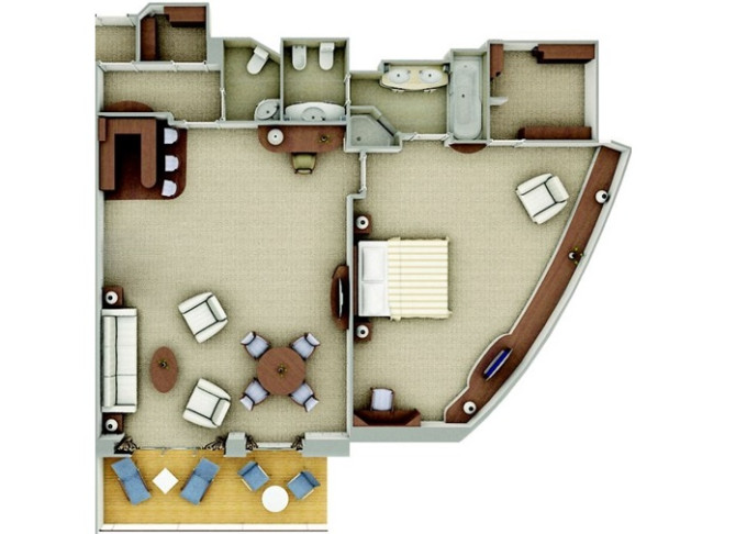 | DX - Deluxe Veranda Suite 26 m² + 6 m² balkón. 6,8,9. paluba stred. Max 3 osoby. | 34 800 € 34 800 € za osobu | ||