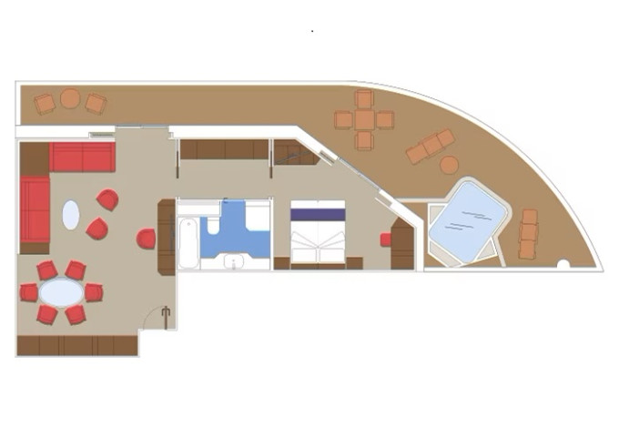 | YC4 - Yacht Club Owner's Suite s vírivkou 104 m² + balkón s vírivkou 48 m² alebo 78 m² / balkón s vírivkou 65 m². Oddelená obývačka a spálňa, šatník, kúpeľňa s vaňou. Max 4 osoby. 16/18. paluba. Cenový model MSC Yacht Club. | 10 490 € 10 490 € za osobu |