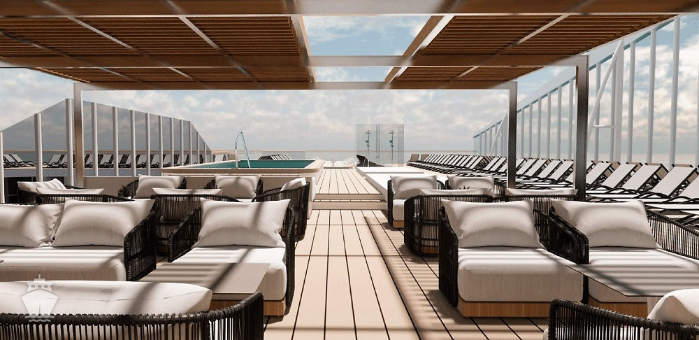 - Športové aktivity na otvorených palubách (jogging, basketbal, futbal, tenis), bazény a ležadlá