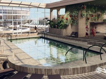 Na lodi sa nachádza 6 bazénov a 14 víriviek pre verejnosť, otvorená paluba vyhradená pre rodiny s deťmi, ako aj vodný Aquapark, kde sa skutočnosť mieša s virtuálnou realitou.