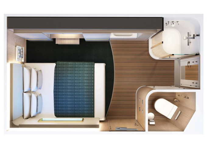 | T1 - Vnútorná kajuta Studio Single 9 m². Max 1 osoba. 10,11,12. paluba - stred. | 1 798 € 899 € za osobu | ||
