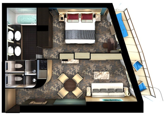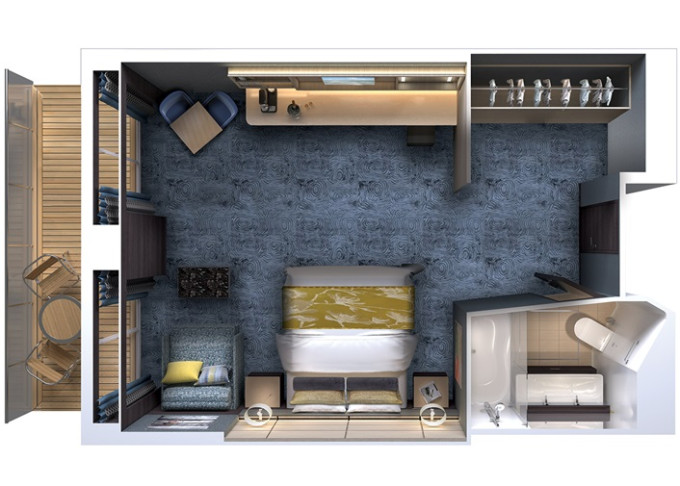 HJ - The Haven Suite s balkónom 35 m² / balkón 5 m². 14. paluba - stred. Max 4 osoby. Výhody The Haven. 3 804 € 1 902 € za osobu
