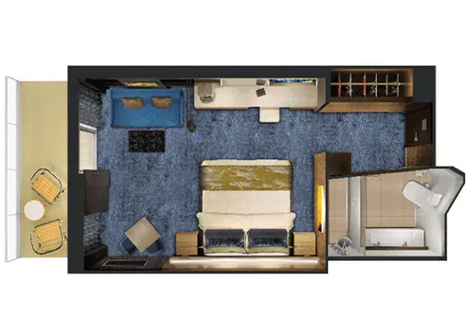 B1 - Kajuta s balkónom Aft-facing od 20 m² / balkón od 3 m². 9. až 15. paluba. Max 2-3 osoby. 1 064 € 532 € za osobu