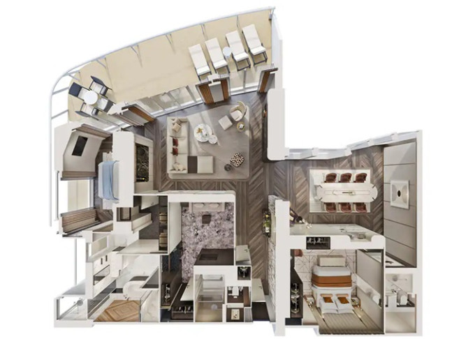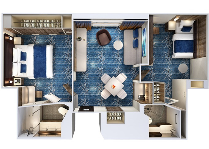 H2 - The Haven Deluxe Owner's Suite 197 m² / balkón 45 m². 18. paluba vpredu. Max 6 osôb. Výhody The Haven. 10 594 € 5 297 € za osobu