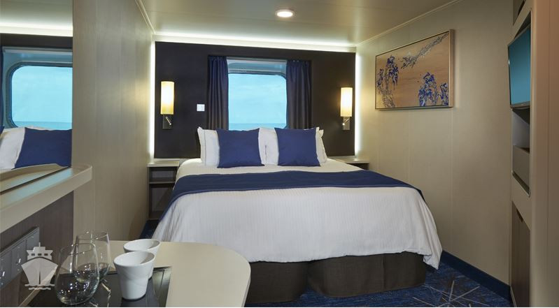 OB - Vonkajšia kajuta s veľkým oknom od 14 m². Neotvárateľné okno. 5. paluba - centrálne. Max 2 osoby. 684 € 342 € za osobu