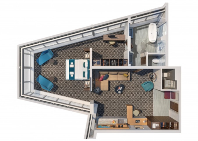 | L1 - Crown Loft Suite s balkónom 50 m² + balkón 10 m². 2-podlažný apartmán. 17. paluba. Max 4 osoby. Výhody Royal Suite Sky Class. | 10 173 € 3 391 € za osobu | ||