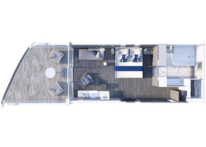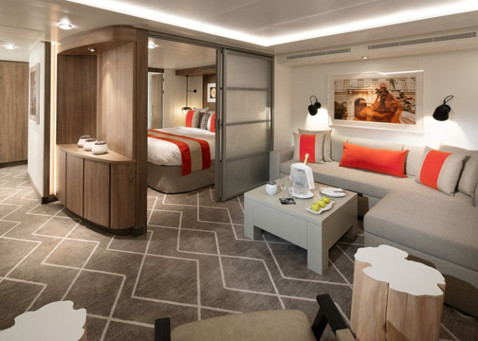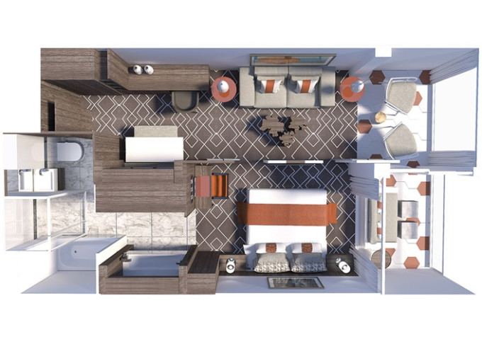CS - Celebrity Suite 43 m² + balkón 5 m². 11,12. paluba. Max 4 osoby. Výhody Suite. 7 230 € 7 230 € za osobu