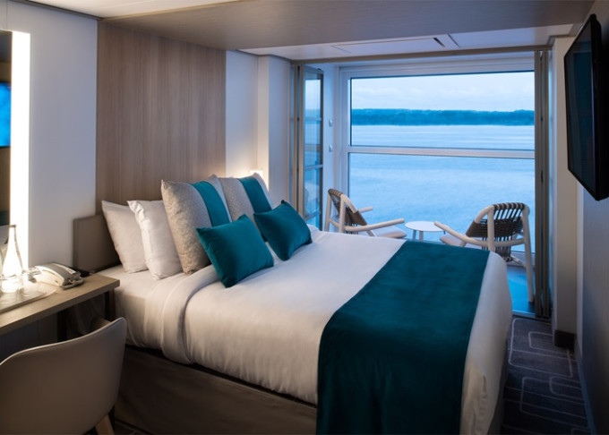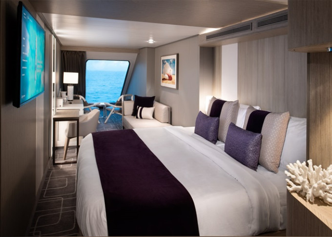 • Kajuty sú umiestnené v blízkosti lodného Spa. K ich vybaveniu patrí posilnený systém vzdušnej filtrácie, posteľ Queen-Size (v kategóriách Edge King-Size), veľké zasúvacie sklenené dvere, exkluzívne posteľné prádlo eXhale®, veľkorysé skladovacie priestory.