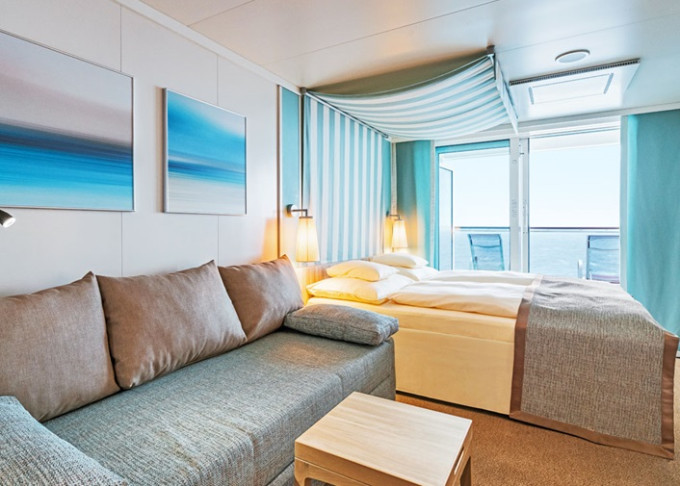 | VC - Kajuta s verandou Komfort PREMIUM od 20 m² + balkón od 6 m². 5,8,9. až 15. paluba. Max 4 osoby. Cenový model Premium. | 7 120 € 3 560 € za osobu |