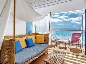 | VG - Kajuta s verandou PREMIUM od 16 m² + balkón 6 m². 9. až 14. paluba. Max 4 osoby. Cenový model Premium. | 6 830 € 3 415 € za osobu | ||