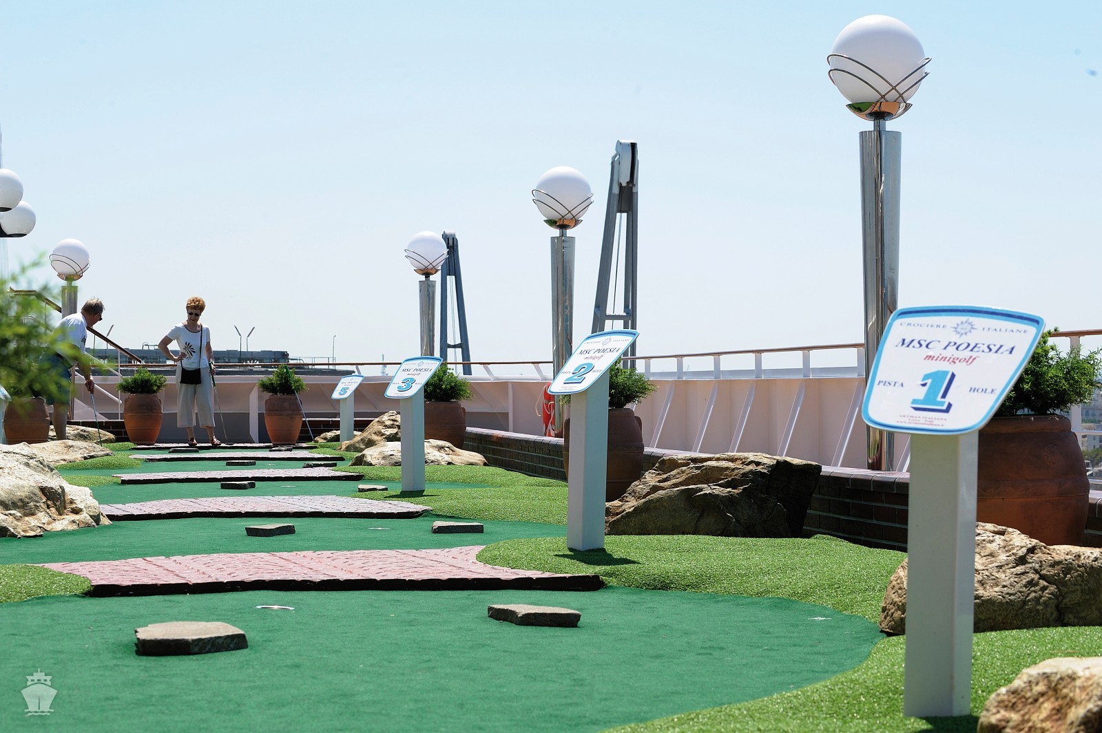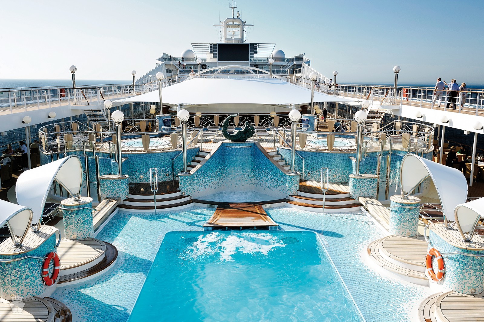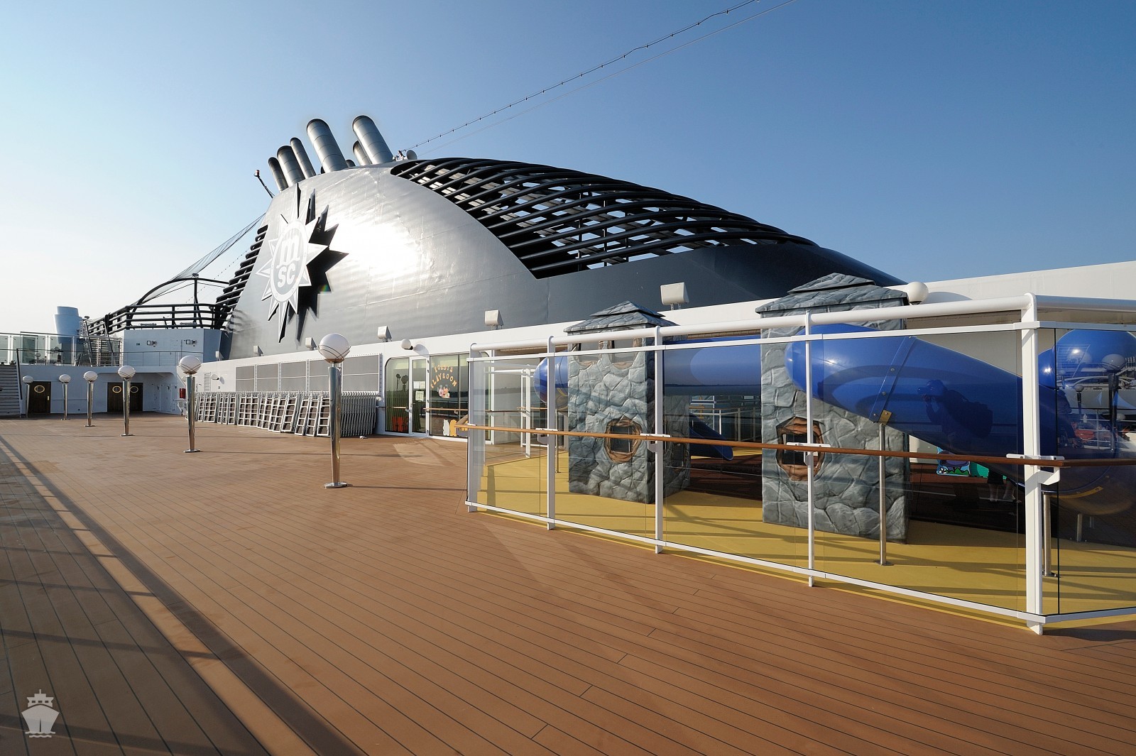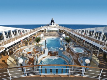 - Športové aktivity na otvorených palubách (jogging, basketbal, futbal, tenis), bazény a ležadlá