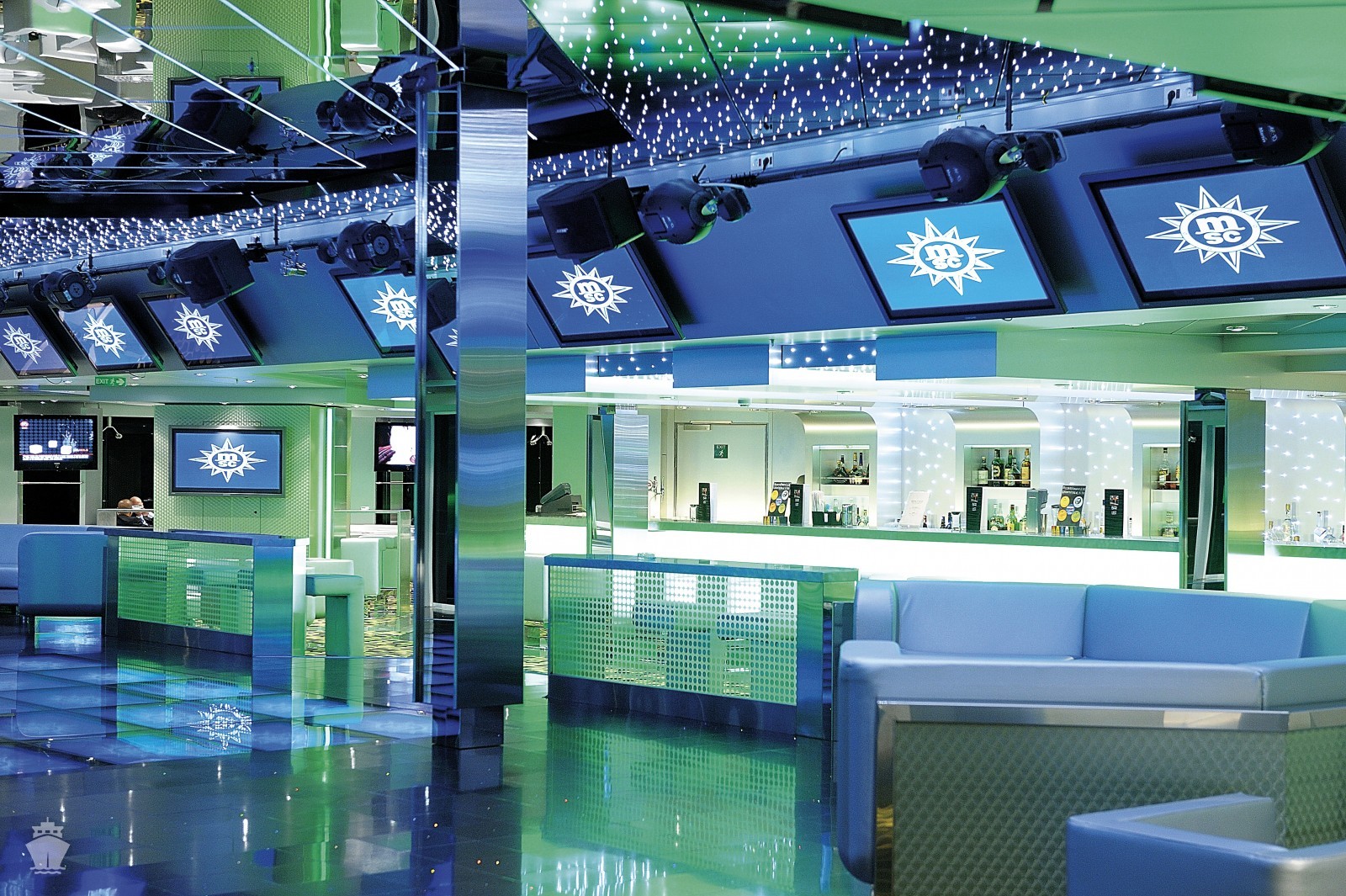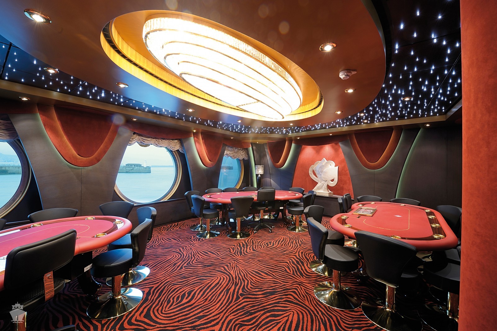 Zábava a ďalšie aktivity: divadlo Carlo Felice, galéria, knižnica, internetová kaviareň, fajčiarsky salónik, bary a kluby, obchody a butiky, kasíno Royal, poker room, detské centrum a centrum pre mládež, video hry a diskotéka S32