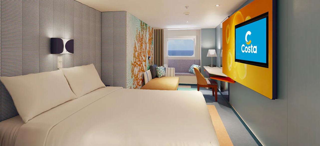 | E2 MyCruise - Kajuta s neotvárateľným oknom 23 m². Neotvárateľné okno. 4-5. paluba stred. Max 2-5 osôb. Cenový model MyCruise. | 835 € 167 € za osobu | ||