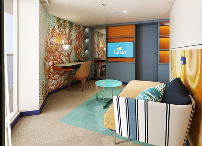 - Ubytovanie v kajute vybranej kategórie. Základné vybavenie: kúpeľňa s WC a sprchovacím kútom, 2 lôžka spojiteľné do manželskej postele, skrine, nočné stolíky, toaletný stolík a stolička, nastaviteľná klimatizácia, interaktívna satelitná TV s plochou obrazovkou, trezor, sušič na vlasy, uteráky a posteľné prádlo, Wi-Fi pripojenie (za poplatok), 24/7 kajutová služba (za poplatok).