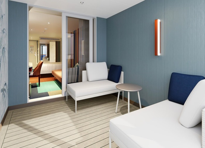 | T2 My Cruise - Kajuta s balkónom Terrace 19 m² / lounge + balkón 8 m². 9. paluba stred. Max 2-4 osoby. Cenový model MyCruise. | 1 116 € 279 € za osobu | ||