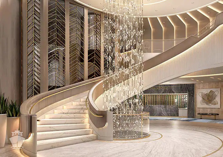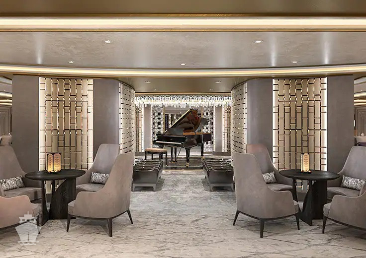 • Apartmán Palatial Owner’s Suite a horná časť lode Library sú exkluzívne navrhnuté firmou Ralph Lauren Home