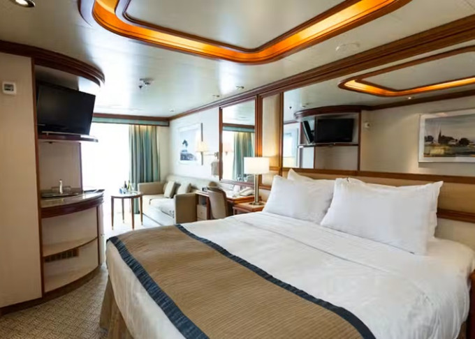 S6 - Vista Suite s balkónom 43-46 m² (vrátane balkóna). Max 3 osoby (gauč). Výhody Suite. 11 180 € 5 590 € za osobu