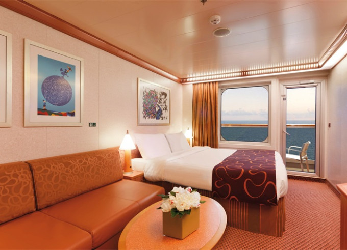 - Ubytovanie v kajute vybranej kategórie. Základné vybavenie: kúpeľňa s WC a sprchovacím kútom, 2 lôžka spojiteľné do manželskej postele, skrine, nočné stolíky, toaletný stolík a stolička, nastaviteľná klimatizácia, interaktívna satelitná TV s plochou obrazovkou, trezor, sušič na vlasy, uteráky a posteľné prádlo, Wi-Fi pripojenie (za poplatok), 24/7 kajutová služba (za poplatok).