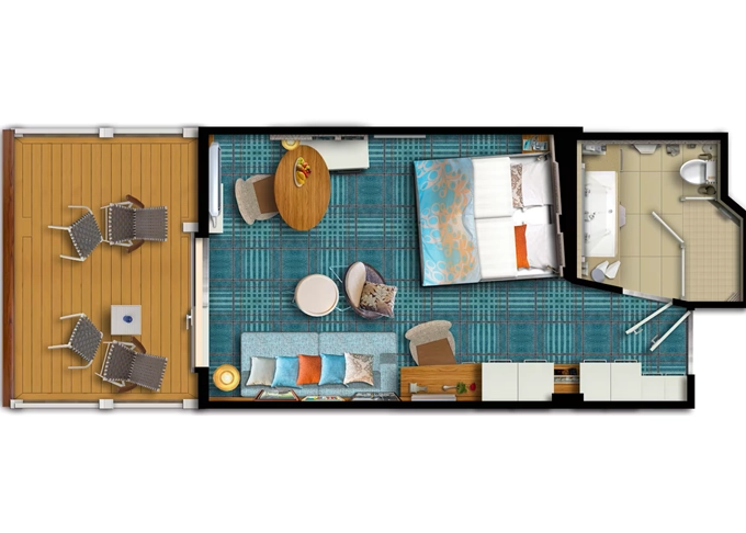 JBAO - Junior Suite s balkónom 26 m² + balkón 8 m² so stolom. 10. paluba. Max 4 osoby. Výhody Junior Suite. 13 796 € 3 449 € za osobu